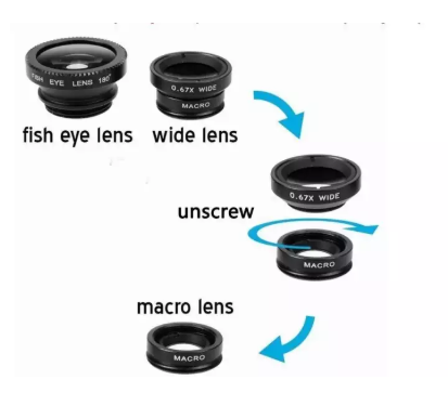 3 in 1 Universal Clip-On Lenses Kit (Black) With FishEye Lens+Macro+Wide Angle Lens