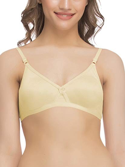 This nude coloured bra is ideal for full rounded figures as well as for those who have settled/sagging bust because of it's cross-over full coverage cups. The undersides of elastics and straps are brushed so that they are soft to touch. The cups are also moulded and seamless making this a great t-shirt bra.Cotton rich fabric is comfortable and breathable in all seasons. This bra has 2 row and 3 columns hook and eye closure.Nude colour also makes an apt pick to be worn under white or light coloured garments..