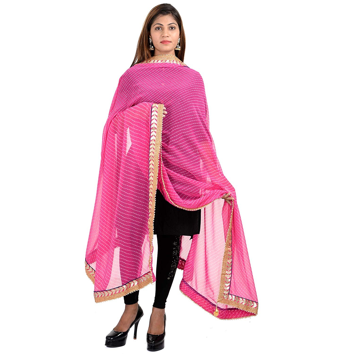 Reviews of Pink Georgette Leheriya Dupatta For Women