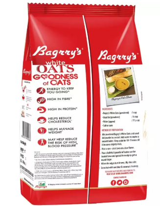 -Kick start your mornings with heart healthy and wholesome Bagrry’s White Oats. Reap the benefits of our 100% wholegrain and nutrition-packed oats. Sourced from the finest oat             growing fields from across the world, we carefully process our signature White Oats to give you the best tasting oats porridge