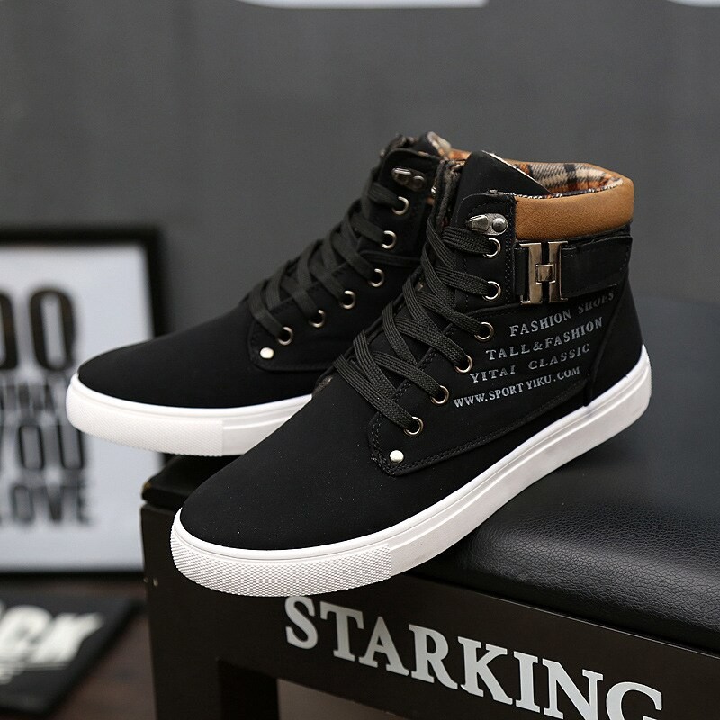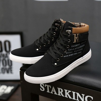 Fashion Autumn Winter Warm Men Shoes High Top Canvas Casual Footwear