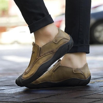 Product detail of Fashion Men Genuine Leather Hand Stitching Slip On Soft Outdoor Casual Flats Loafers Shoes