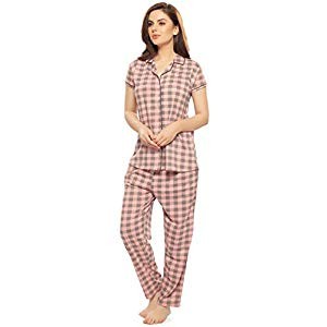 • Material: Cotton | Print: Checks Printed Night Suit for Women Cotton