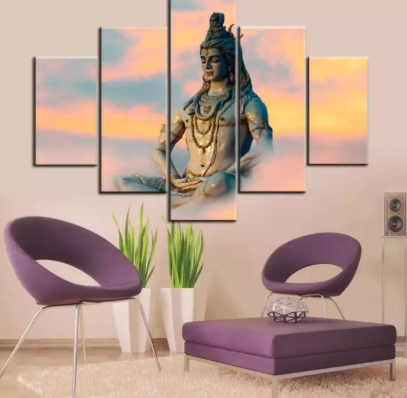 Reviews of Lord Shiva Canvas Deity Abstract Home Decor- 5 Pieces Canvas Art Printed with Wooden Frame