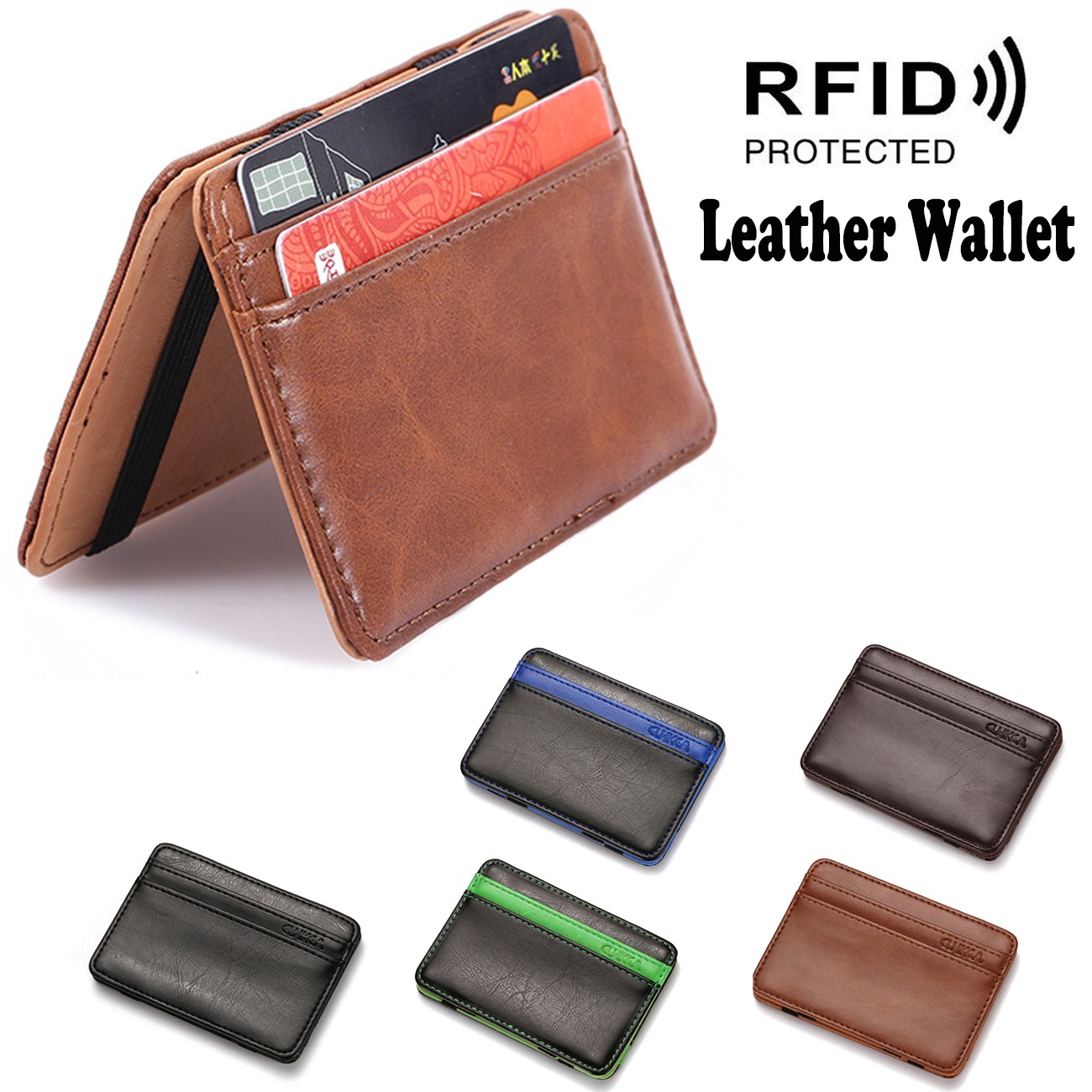 Specifications of Magic Wallet Slim Credit Card Holder Case Leather Sleeve with ID Window Brown