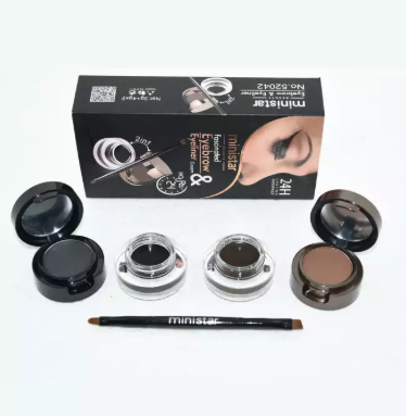 MINISTAR 4in1 Brown + Black Gel Eyeliner and Eyebrow Powder Make Up Water-proof and Smudge-proof