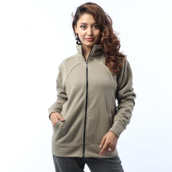 Navy Blue Front Zippered Polar Fleece Jacket For Women