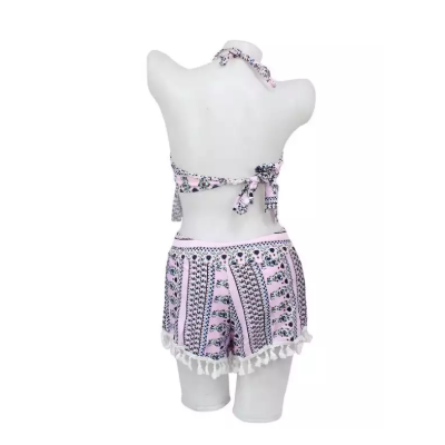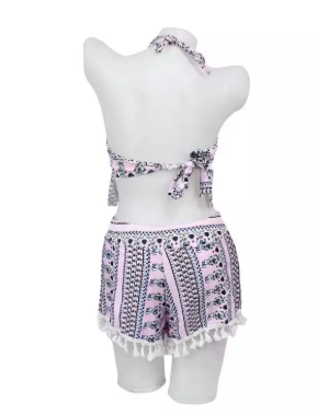 Product detail of Pink Printed Halter Neck Top and Bottom Swim Set For Women