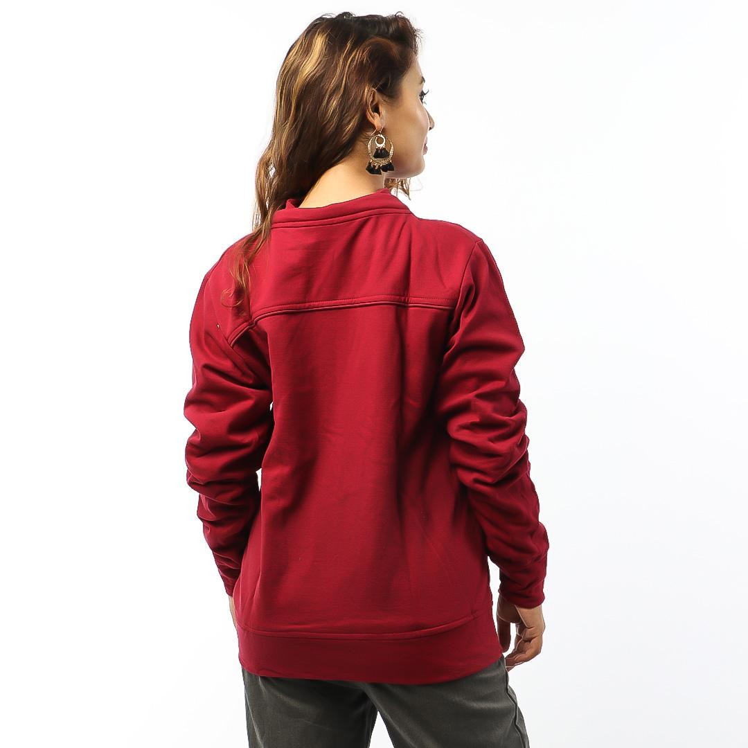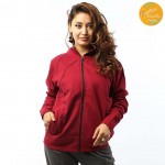 Red Front Zippered Cotton Fleece Jacket