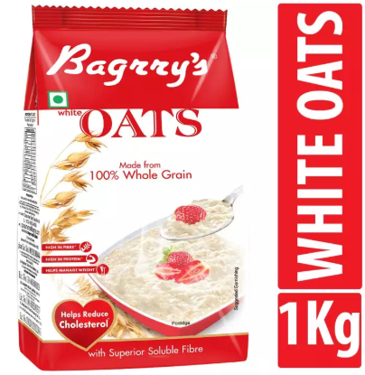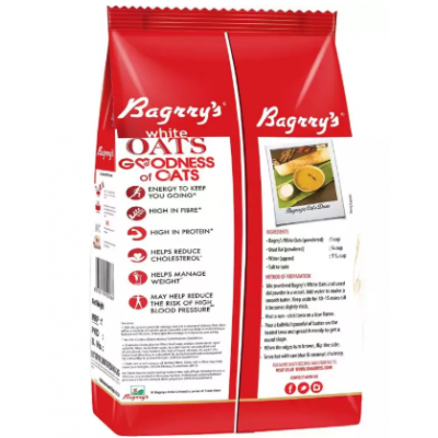 -Kick start your mornings with heart healthy and wholesome Bagrry’s White Oats. Reap the benefits of our 100% wholegrain and nutrition-packed oats. Sourced from the finest oat             growing fields from across the world, we carefully process our signature White Oats to give you the best tasting oats porridge